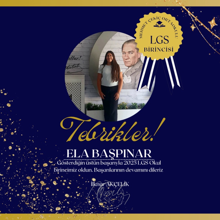 LGS’de yüzde 0.3'lük dilime giren öğrencimiz okulumuzun birincisi olarak bizi gururlandırdı.